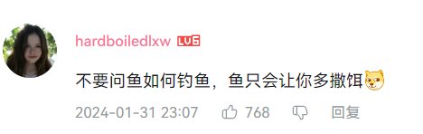 还有老哥借物喻人,表示钓鱼的别听鱼的,不然你只会被忽悠着撒饵,鱼是一条也别想钓到。我感觉这比喻很形象。