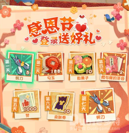 除了以上的新玩法和新功能,从11月25日开始,妖怪屋还将开启感恩节七日签到活动,登陆即可领取奖励!家主们可一定不要忘记参加哦。同时在感恩节当天登陆游戏,庭院中还有小惊喜等待着家主~