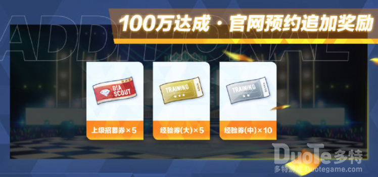 官网预约的制作人除已有的预约奖励之外,公测后还可额外获得【上级招募券x5+经验券(大)x5+经验券(中)x10】!如此丰富奖励,不快来官网预约吗?