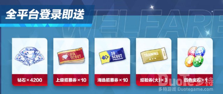 全平台登录奖励《偶像梦幻祭2》公测后,全平台登录均可获得超值的登录奖励!【钻石x4200+上级招募券x10+海选招募券x10+经验券(大)x5+四色宝石x1】,此外,首测将追加全服补偿【上级招募券x5】,制作人们千万不要错过!