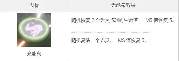 光之泉可选择以上内容之一,可以恢复HP和复活角色。MS值也可以恢复所以在紧要关头使用它。