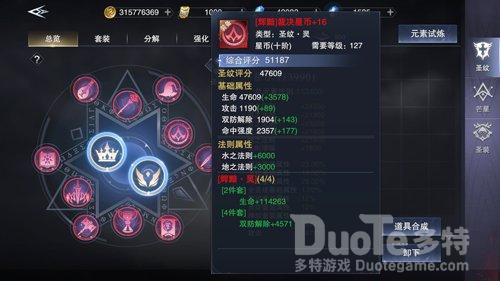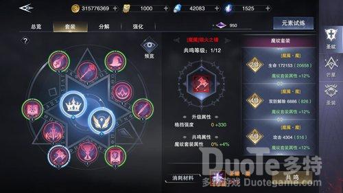 有条件的玩家,建议开一波圣纹宝藏,以开出内圈2个神纹为主要目标。神纹可以消耗混沌源晶升阶,只需开出最低档的守望套装,就能慢慢培养。更重要的是,2个神纹有全属性法则增幅,能帮助我们快速挑战更高级别的元素试炼。