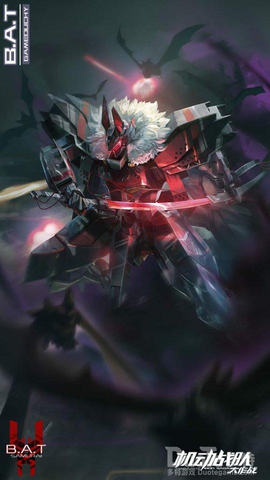 “伏翼”二改将至联动机体“伏翼”是地中海工业根据迷之外骨骼“蝙蝠武士”上的技术逆分析之后制造的强力BM,在专属机师“长宗我部‧韦恩”的驾驶下,才能释放出原本的梦幻剑技。