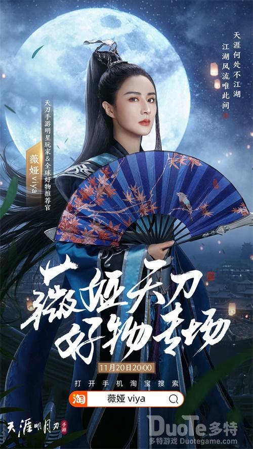 全球好物推荐官薇娅将在11月20日晚在淘宝“薇娅直播间”直播“带货”天刀好物,天刀主题的神秘好物将亮相薇娅直播间任君选购,让天刀陪伴你的生活每一刻,更有粉丝专属福利大放送,道具礼包CDK、实物周边应有尽有,记得来抢哦!届时打开淘宝搜索“薇娅viya”或关注薇娅官方微信公众号“薇娅惊喜社”即可了解并参与活动啦!