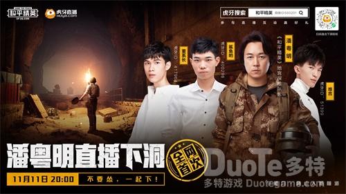 11月11日20点,锁定虎牙直播和平精英官方房间:660201,一起围观潘粤明与三位虎牙主播精彩纷呈的真·下洞探险直播吧!不要怂,一起下!