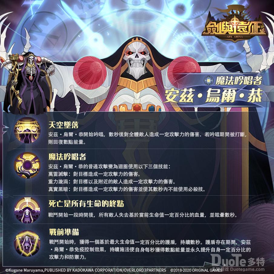 卡牌类放置手游《剑与远征》与日本人气动画《OVERLORD》联动决定,为伊索米亚大陆迎来两位虚空的来访者,全新英雄『魔法吟唱者–安兹·乌尔·恭』以及『纯白恶魔–雅儿贝德」登场。