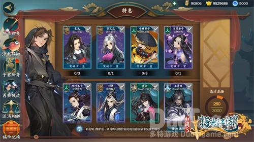 少侠可从全部侠客中选择5位心仪的侠客加入卡池!当少侠成功开启【予君所寻】后,会优先获得潜能未满的侠客【突破卡】,当所选的侠客均已突破最大潜能,寻访获得的【突破卡】则会转换为一定数量的【福币】。若少侠选择尚未激活的侠客加入卡池,只可获得该侠客的【突破卡·紫】,且无法激活直接侠客哦!