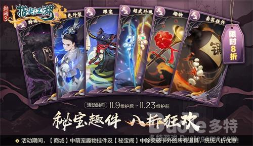 活动期间,通宝充值所有档位重置,少侠进行通宝充值首次翻倍;隐元秘令,特惠来袭,【侠义令】【威望令】【名剑令】限时1元出售。此外更有秘宝珍趣,八折狂欢。【商城·秘宝阁】中【武器外观】【外装】【挂件】【趣物】及【商城·趣物】中【宠物】【挂件】【小玩意】限时8折出售。