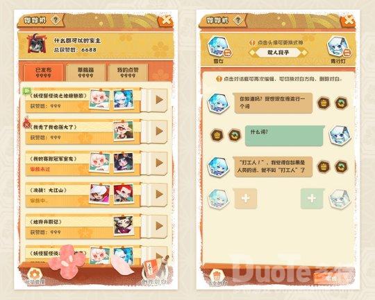 哔哔机上线后,家主们已发布的对话作品,可能会出现在其他家主的庭院式神对话中~其他家主还可以为作品进行点赞!快准备好脑洞,一起创造出最吸引人眼球的对话吧~