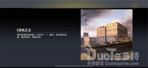 装卸货场地图则是新赛单货场之王的专属地图,该模式为赛单系统的又一更新,玩家可在装卸货场中随机体验到战术团队竞技、据点争夺、抢牌行动模式,趣味性很强。装卸货场地图十分方正,地图四角放置部分箱体作为遮挡物,中间则由集装货箱分割成笔直的数个纵横贯通的通道,玩家杀入货箱群中,一转角或许就能撞上敌人,冲突性较强,需时刻警戒。