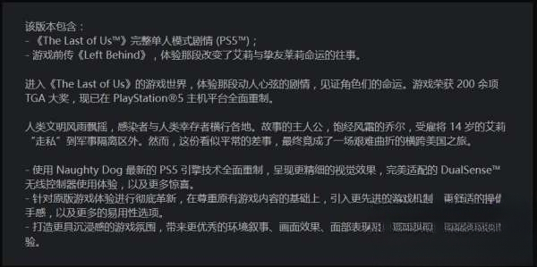 以上全部就是最后生还者重制版内容介绍,希望能为各位玩家们带来帮助,想要了解更多游戏攻略及资讯请持续关注多特游戏。