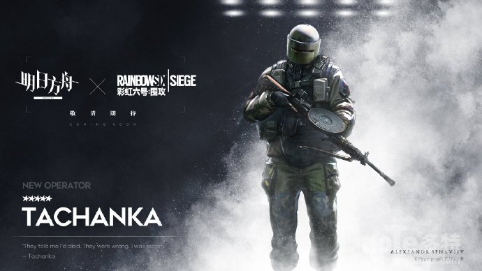 在一周年就放出风声的育碧联动公布了更具体的信息。《明日方舟》将和育碧旗下产品《彩虹六号:围攻》联动活动确定。《彩虹六号》中的四名干员将会降临罗德岛,而干员TACHANKA(机枪哥)则作为五星活动干员赠送。
