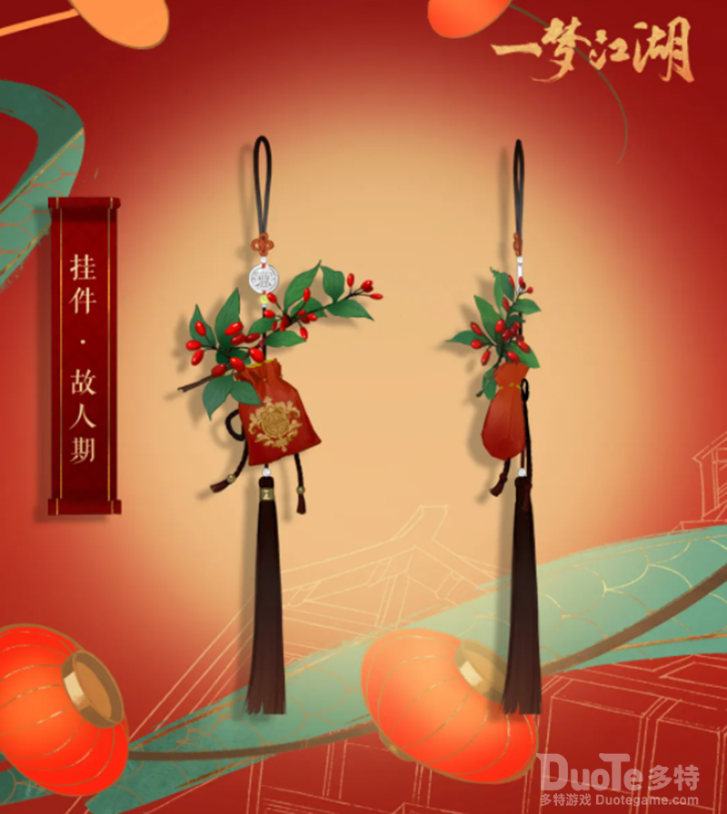 挂件“故人期”,做工复杂精巧,元素众多,然而云锦楼的大师能够将各类元素搭配得巧妙贴切,不知少侠佩戴这个挂件,是否会思念起心中的那个故人呢。完成“且醉今秋”任务,即可获得节日专属道具木犀糕1块,集齐15块可兑换重阳节专属挂件——故人期。
