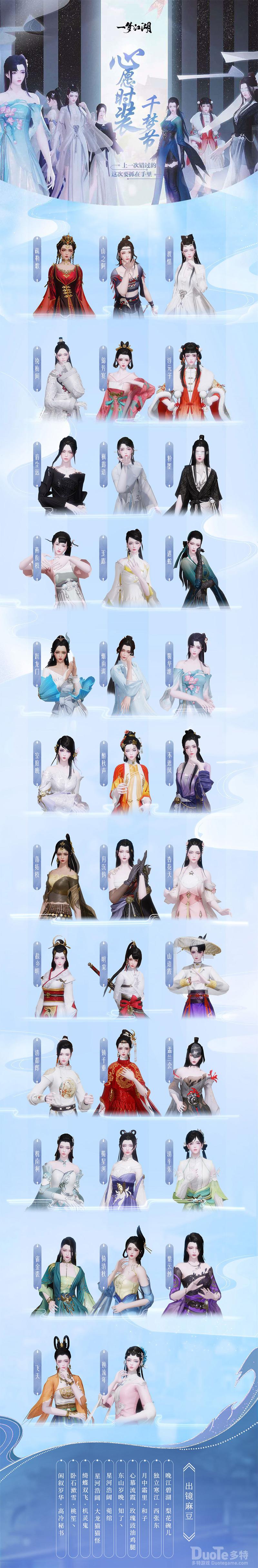 天机阁举办这场千梦盛典,就是为了庆祝与少侠们的相遇,赠福利,裁新衣,共庆盛典。也希望每一位少侠,在今后有江湖相伴的日子里,能够着更多云锦精制的华服,快意江湖,踏歌芳华。