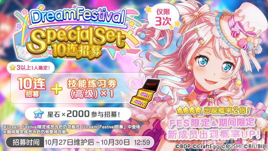 2. Dream Festival限定成员及期间限定成员,亦可在「Dream Festival·Special Set 10连招募」中进行招募。