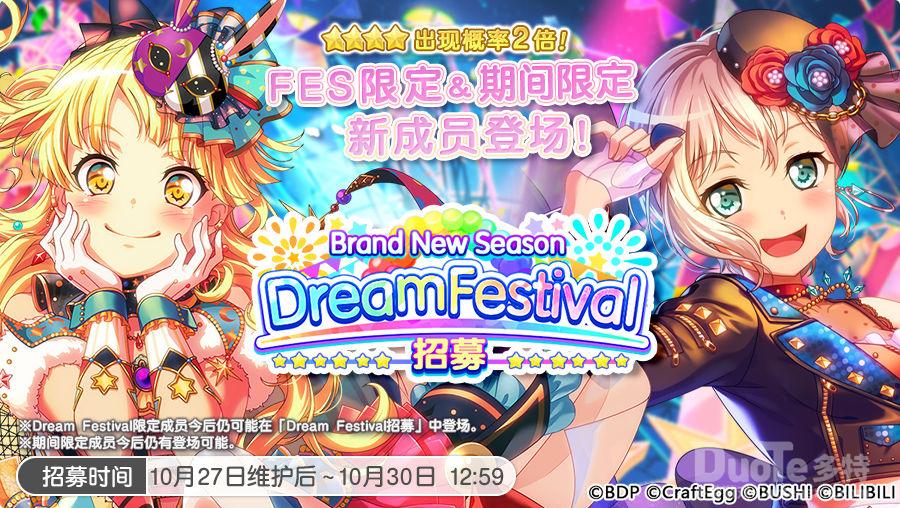 PS:10月30日「Brand New Season·Dream Festival招募」结束后,游戏内将开启「少女们的乐团生活日常!2招募」,期间限定成员将在该招募中登场,Dream Festival限定成员不会在该招募登场。