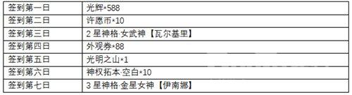 【七日签到,免费获得3星神格伊南娜】开服7日,天天签到得好礼!3星神格【伊南娜】免费获得!(3星为卡池中神格最高星级),此外签到还有10连、外观券等丰厚物资赠送,快随小猫娘看看叭~!