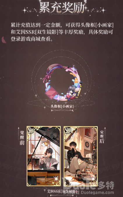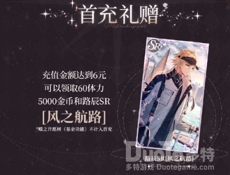 首充礼赠:充值6元可获得游戏道具、SR画灵等。