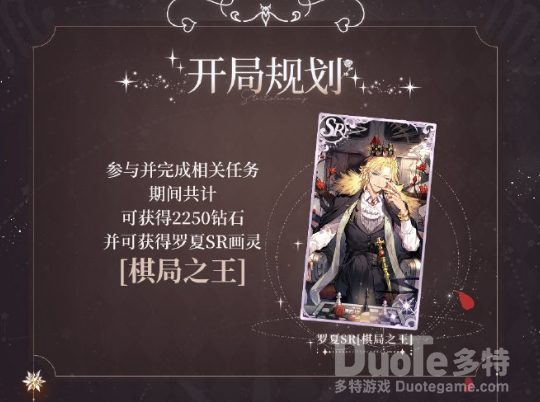 开局规划:完成任务可获得2250钻石、SR画灵等。