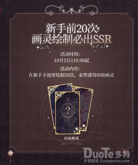 画灵绘制:新手前20次绘制必得SSR画灵。