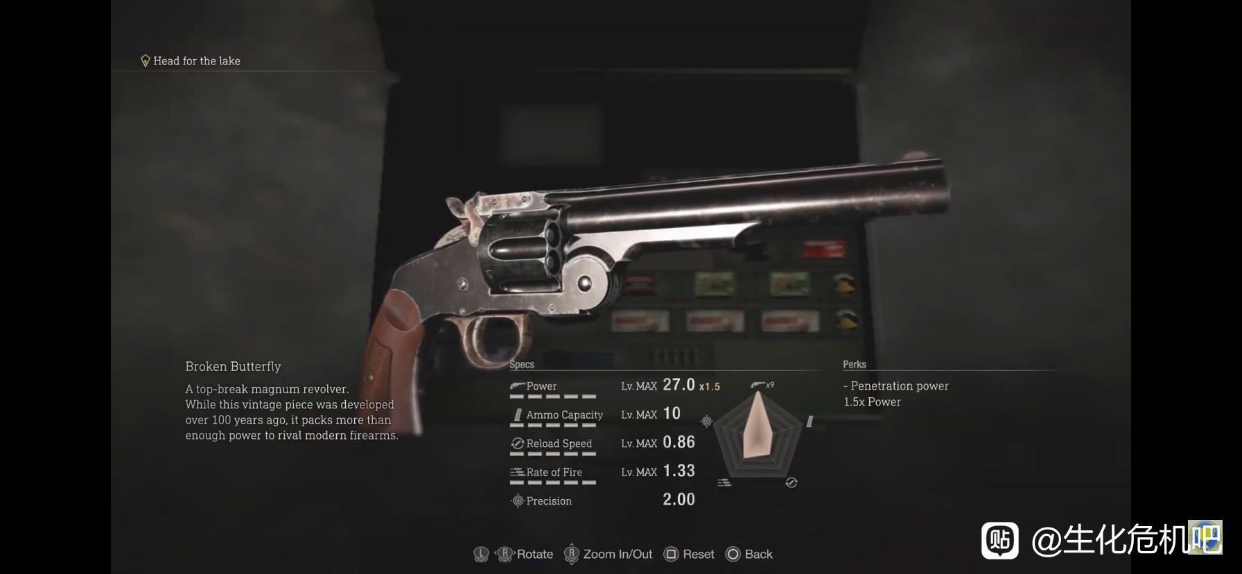 原版通关一周目解锁,终改100发填满,非常鸡肋的一次性玩具。伤害和冲锋差不多,掉落量远不如冲锋,基本用光一次就很难补到上限了。