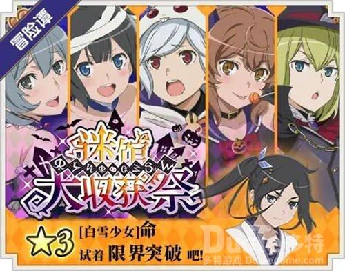 【迷馆大收获祭冒险谭开启 限定剧情公布】在10月22日游戏更新后,冒险谭-迷馆大收获祭也将随更新一起上线。在最新的冒险谭中,将会有最新的限定剧情公布;同时,各位冒险者们也可以通过收集万圣节活动道具兑换【⭐3【白雪少女】命】!
