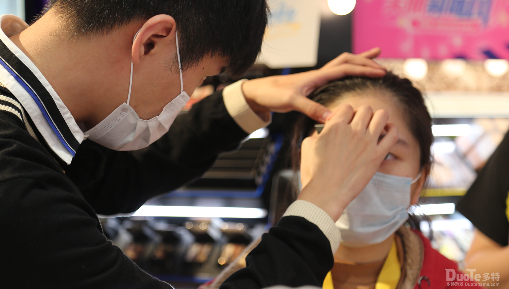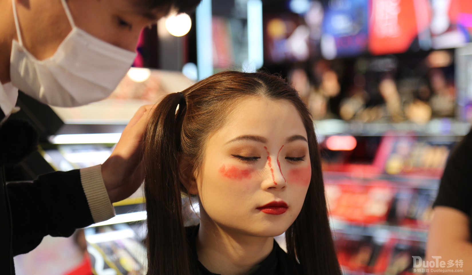 在20余位玩家纷纷到场后,由和気桃桃赞助的饮品也送达现场,而活动也在一众玩家的期待中正式开始。首先开始的活动是屈臣氏美妆课,由一位美妆老师和一位模特小姐姐为大家带来的万圣节仿妆。而后我们跃跃欲试的玩家在美妆老师的精心打造下成功“大变样”!同时在活动中还有超多福利掉落。