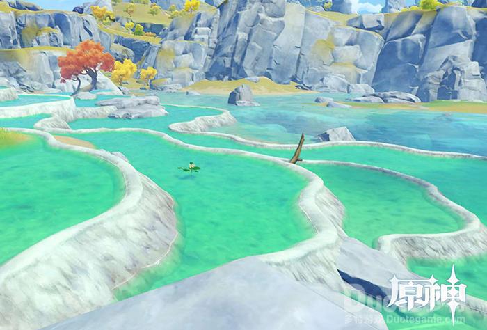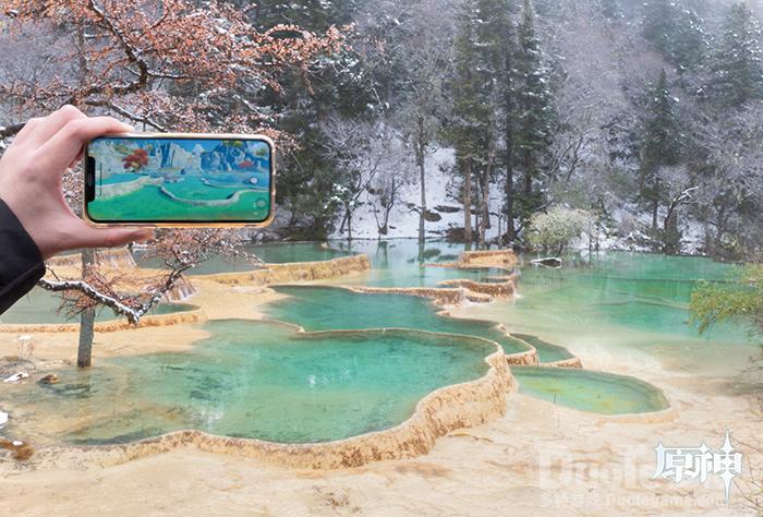 【多彩生态 为美景注入东方灵韵】黄龙景区艳丽奇绝的五彩池,就是《原神》璃月地区「渌华池」的现实原型。「渌华池」还原了钙化彩池群的独特景象,在骄阳下如交叠的明珠般熠熠生辉。此外,璃月还以黄龙地区为范本,构筑出完整的生态环境。高海拔地区有槐松,平原及河滩生长着竹、梅、银杏类植物。野外生物则有惯常在岩壁间来去的鹤、蜥,以及河滩上的各式鱼蟹。