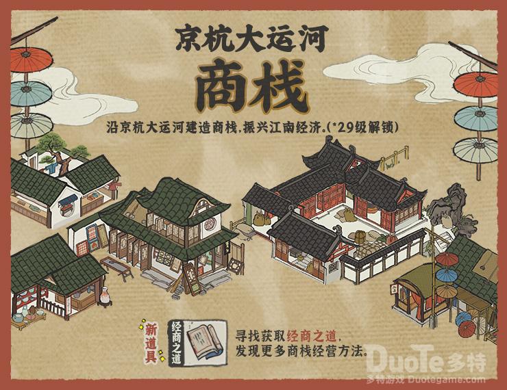 《江南百景图》此次在新版本中新增了“商栈”玩法。知府大人可在京杭大运河的最南端——杭州府,体验沿岸建造不同类型的商栈、交易货物获取收益,见证明代杭州的繁荣景象。