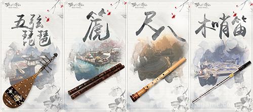 【奏响千年古乐器,每个场景拥有专属的器乐符号】在制作主题音乐时,国艺大师使用五弦琵琶、篪、箫、尺八、木哨笛、南箫等多种千年传承的古乐器,为每个场景主题音乐加入了专属的乐声或节拍,打造场景间独有的器乐符号。狐岐山山石嶙峋诡异,暗藏鬼王宗与各门派间的复杂情感,主题音乐就选用音色低沉的篪来演奏。草庙村野外多见毛竹,竹笛的悠扬清脆更有乡间生活的轻松感,所以场景中主要以笛声演绎。