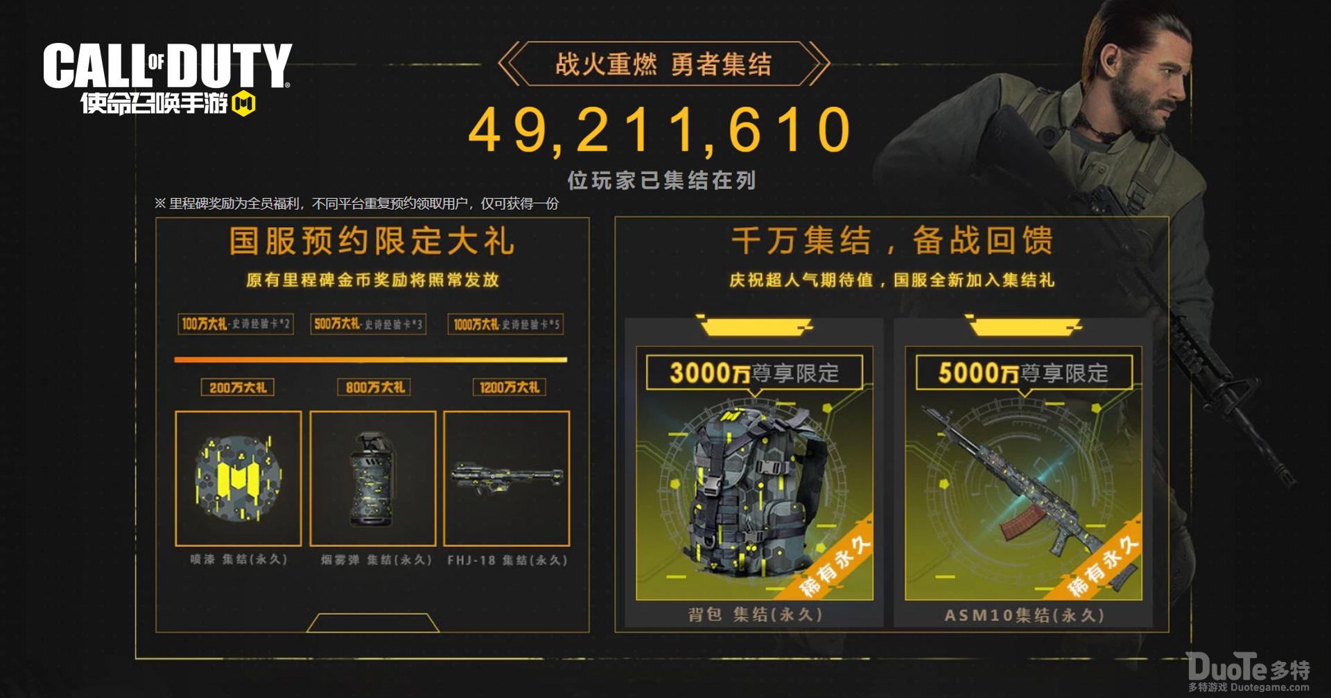 一号难求 定档10.20开启“使命终测”目前,《使命召唤手游》以近5000万的预约量成为FPS手游的新热门,大量新玩家涌入呈现一号难求的态势。此外,官网抢号预约已正式进入倒计时,抓紧最后的机会,抢占“使命终测”的黄金资格,不容错过!
