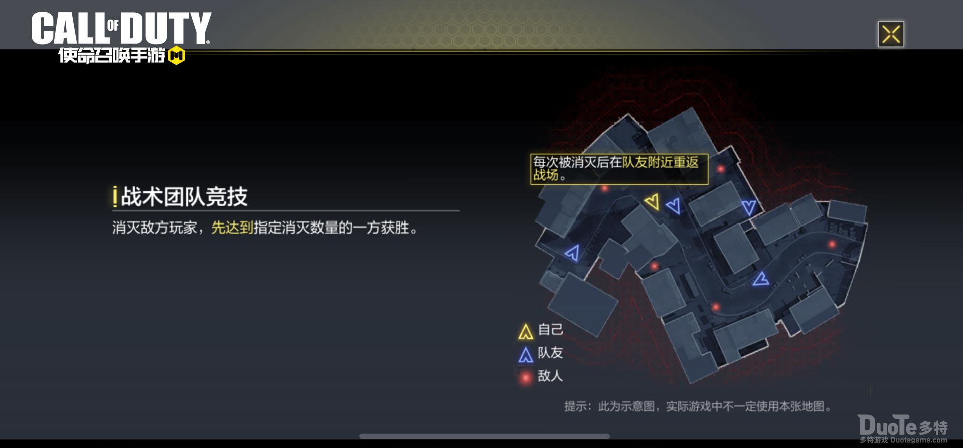战术团队竞技、冲锋团队竞技:经典5v5团队对抗模式,10分钟内率先达到指定分数的团队获得胜利,二者在复活点位置以及重生后是否有无敌时间等条件上会有所不同。这是最基础简洁的对战模式,相对更强调个人枪法水平,尤其在连续得分奖励的加持下,往往可以放大高手的优势,将比分一举拉开。