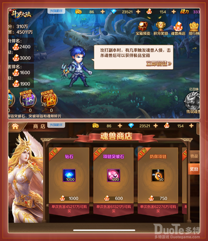 刷完体力,这里的4项排行,都能拿到前几名,魂兽入侵的商店可以拿26项奖励,有钻石,有3种项链进阶材料,有项链强化材料。1200体差不多能刷到3万左右的魂兽币,ps:魂兽商店可以消耗魂兽币。魂兽商店固定资源:s千道流碎片,s千纫雪碎片,A+天青牛蟒,A+泰坦巨猿,3项项链进阶材料,项链强化材料等等。养成一个良好的收集习惯,这将是变强的第一步。