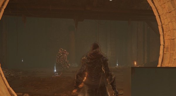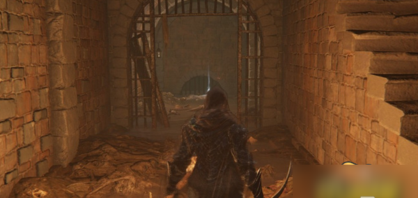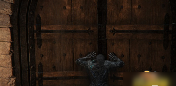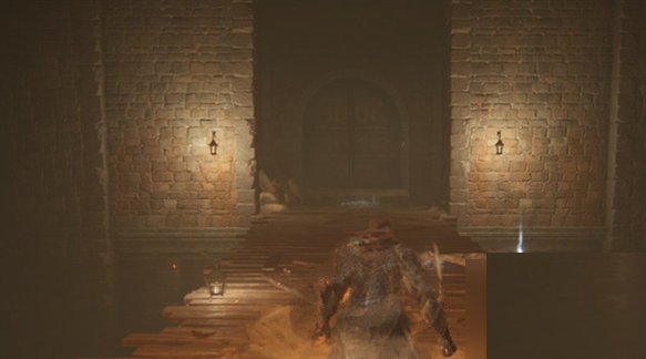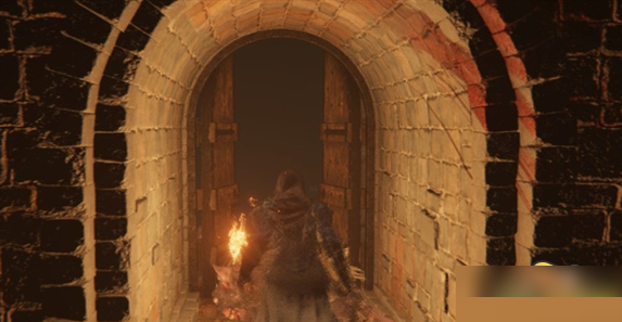 1:从地底大道旁这个赐福点出发,正对面的木门不能从这一侧开启,这一阶段我们的任务就是绕到另一边打开它。