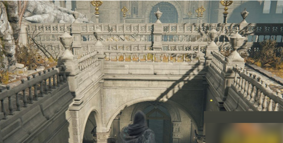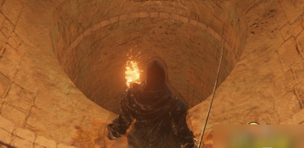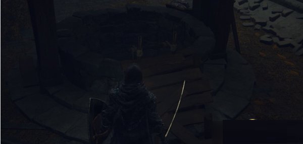 4:观察左方栏杆下,发现井口时跳过栏杆下去,进入井中