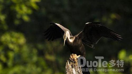 曾出现于中国南部湿地的珍稀鸟类黑腹蛇鹈,我国仅在1931年留下过它的影像资料,南蛮原始森林的极危鸟类盔犀鸟,因其称为“鹤顶红”的头骨而被大肆猎杀,而你可以在毒蛇谷中听到它们的鸣啼。