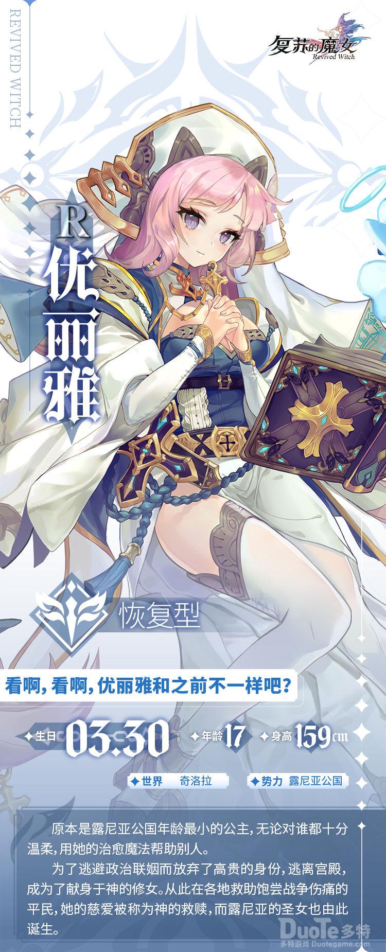 “露尼亚公国的公主,这个头衔只是政治上的筹码。优丽雅只希望救助更多的人,愿神赐福这片饱受战火之痛的大地。”