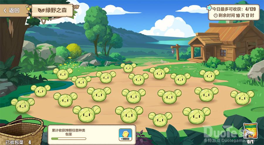 包菜们会随着时间自动生长,菜园中每轮可生长的包菜个数上限为20个,每日最多可收获120个包菜。