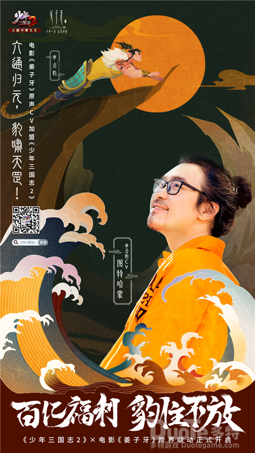 【梦幻联动 电影CV“声”临三国】除上述世界观CV及电影级大海报外,本次破壁联动,《少年三国志2》更邀请了电影《姜子牙》原班CV郑希、图蒙哈特“声”临三国,担任本次联动武将“姜子牙”及专属皮肤“申公豹”的配音。“万物由己,不由神!”、“若天道不公,我便走自己的道!”……这些让人热血沸腾的电影台词将在游戏中随两大联动角色一起,奏响少年们征战三国的胜利前奏!