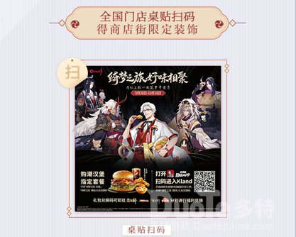 KFC门店扫码有奖 甜品店联动限定礼同时,客人们前往全国各地的KFC线下门店,扫描相应桌贴二维码,即可获取一份商店街限定装饰看板“汉堡套餐”,快用三目与美味汉堡的广告来装点你的商店街吧!不仅如此,在9月28日到10月7日期间,购买KFC潮汉堡套餐,还可以得到《阴阳师:百闻牌》游戏内礼包一份,内含经典秘闻卷*1、墨玉*10,与金币*1000。