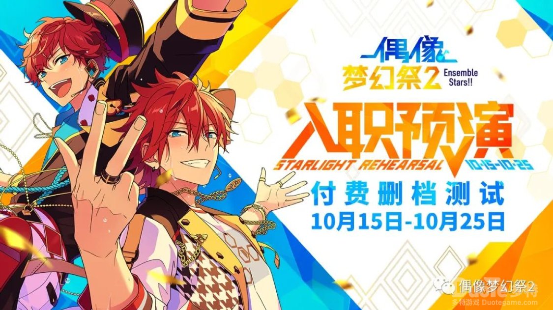 华丽升级的舞台,偶像在这里再出发! 2020年10月15日,《偶像梦幻祭2》预演测试即将开始!想成为金牌制作人的你,别忘了来见证这最后一次彩排,