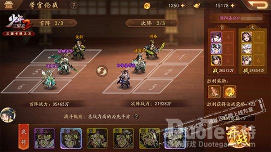 学宫论战 战法为先三国乱世奇策百出,究竟谁是最强策略大师?《少年三国志2》PVP玩法“学宫论战”拉开帷幕,给你一个展现最强大脑的舞台!在三将对战模式下,你可以将队伍拆分成首阵与次阵,与其他少年一决高下;全新装备“战法书”为你提供破局之道,开启战法技能,激发强大的属性增益!