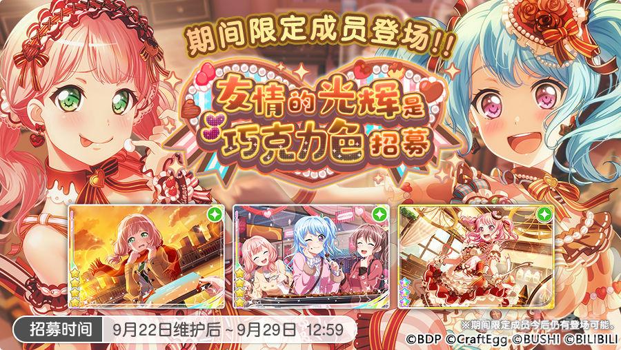 各位亲爱的BanG Dreamer:9月22日维护后,游戏内将开启「这个巧克力是为谁准备?」竞演演出活动和「友情的光辉是巧克力色招募」,期间限定成员限时登场!还将追加翻唱歌曲《らしさ》!此外,还将更新「米歇尔贴纸交换所」的交换内容。