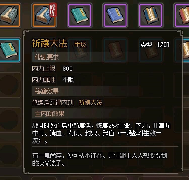 破完局要点棋局旁边的书,可以获得下图的甲级内功。