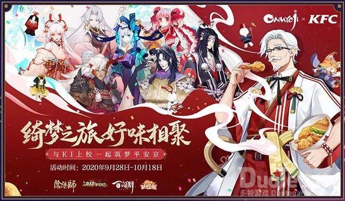 【阴阳师大IP X 肯德基品牌合作】阴阳师、决战!平安京、阴阳师:百闻牌、阴阳师:妖怪屋,4款游戏联合肯德基,与KI上校一起筑梦平安京。