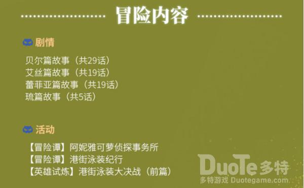 【冒险内容&开放卡池】剧情方面,国服将开放贝尔、艾丝、蕾菲亚以及琉四位角色的剧情故事,共计72话故事!同时,在活动版块,也将会上线阿尼雅可萝侦探事务所、港接泳装纪行、港接泳装大决战(前篇)三项活动,让各位玩家同时体验正传&外传的剧情!