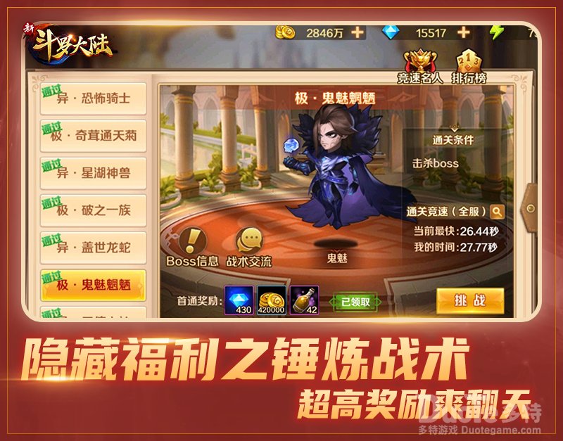 隐藏福利之锤炼战术,超高奖励爽翻天《新斗罗大陆》隐藏福利可以说随处都是,只要你用心去玩游戏,不知不觉就能赚到大量钻石.