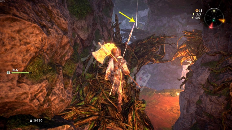 返回牙旗5,往中间的路径走。在洞穴出口位置处,先往左拐。