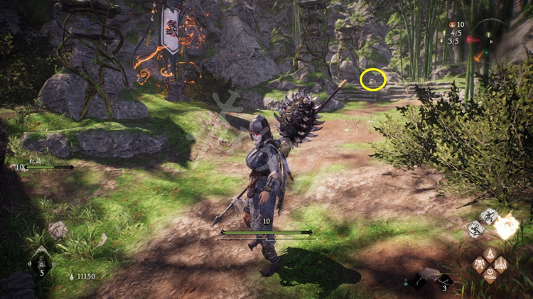 上坡后就能找到牙旗点,再继续往阶梯上走还能找到一只啮铁兽。