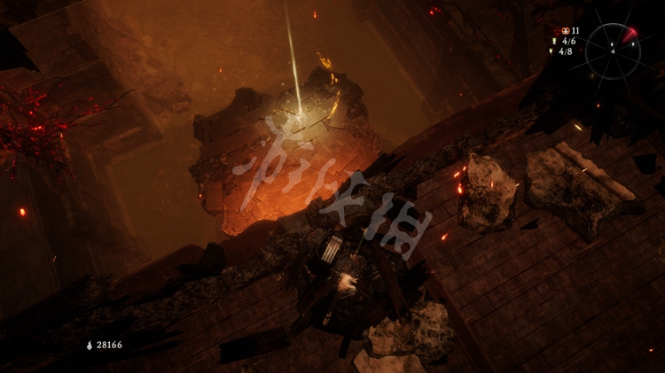 从楼上下来进入下一个区域,中间的塔楼上盘踞着一只恶龙会不断对玩家所处的位置释放落雷。